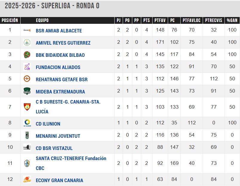 Amiab Albacete se convirtió en nuevo líder de la SuperLiga Fundación ONCE tras sumar su segundo triunfo de la temporada, algo que también lograron Amivel y Bidaideak Bilbao. Por contra, Menarini Joventut, Vistazul y Santa Cruz Tenerife Fundación CBC volvieron a cosechar una nueva derrota, la segunda del curso.